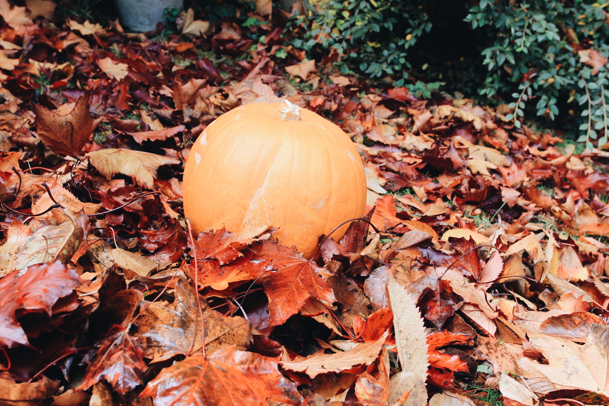 Nevertheless, Where theres a will… Went out, bought a pumpkin in Tescos and tossed some leaves around in the garden. .. There’s always a plan B.